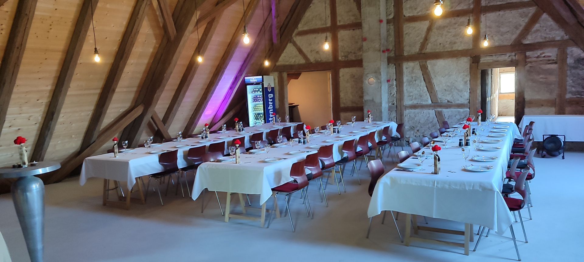 Durch die schallisolierenden Tore ist sie auch geeignet als Tanzfläche und Bar - bei Hochzeiten die ideale Ergänzung zur Löwenhalle.