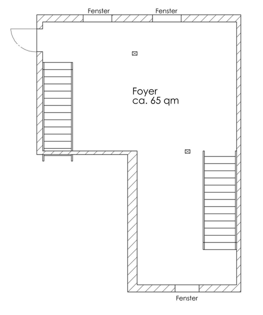 In die Löwenhalle kommt man über das geräumige Foyer im 1. OG. Mehr als ein Durchgang lässt es sich auch als Raum für Buffet, Lounge, Kaffeebar u.a. nutzen.