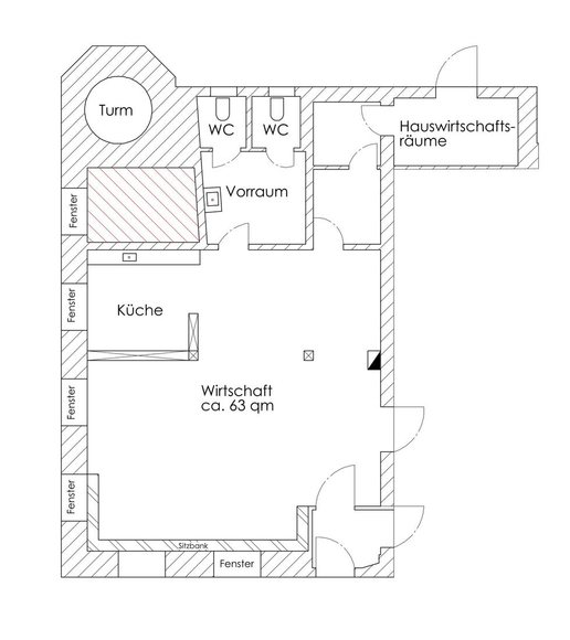 Sie ist verbunden mit der Wirtschaft (einschl. WC), nach hinten gelangt man in den Löwengarten.
